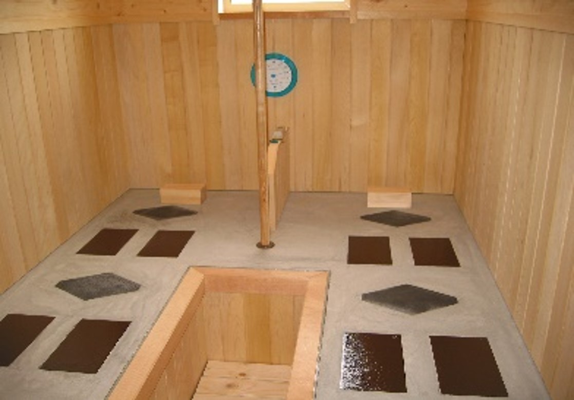 40~45℃位と温度の低い岩盤浴です。入り方も10分位で体を温めたり20分位でチョット汗をかいたりと好みに合わせて使っていただいてます。冷え性の方にも好評です。