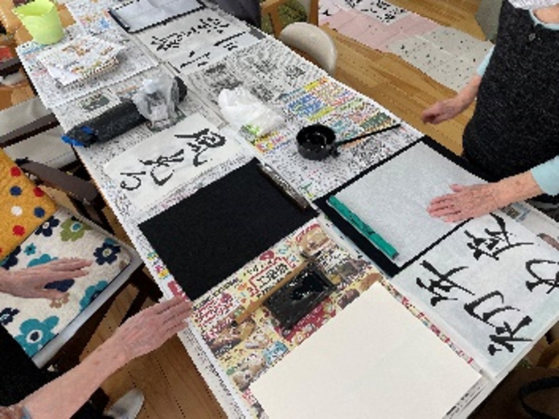 若い時に習っていた方や初めて書道に取り組んだ方などが気軽に参加しています。年に2回程度書道展に出展している方もいますよ