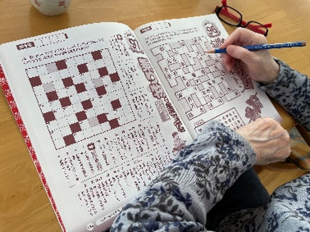 間違い探し、点結び、計算問題、漢字パズルと好みに合わせて楽しみながら脳を鍛えています。